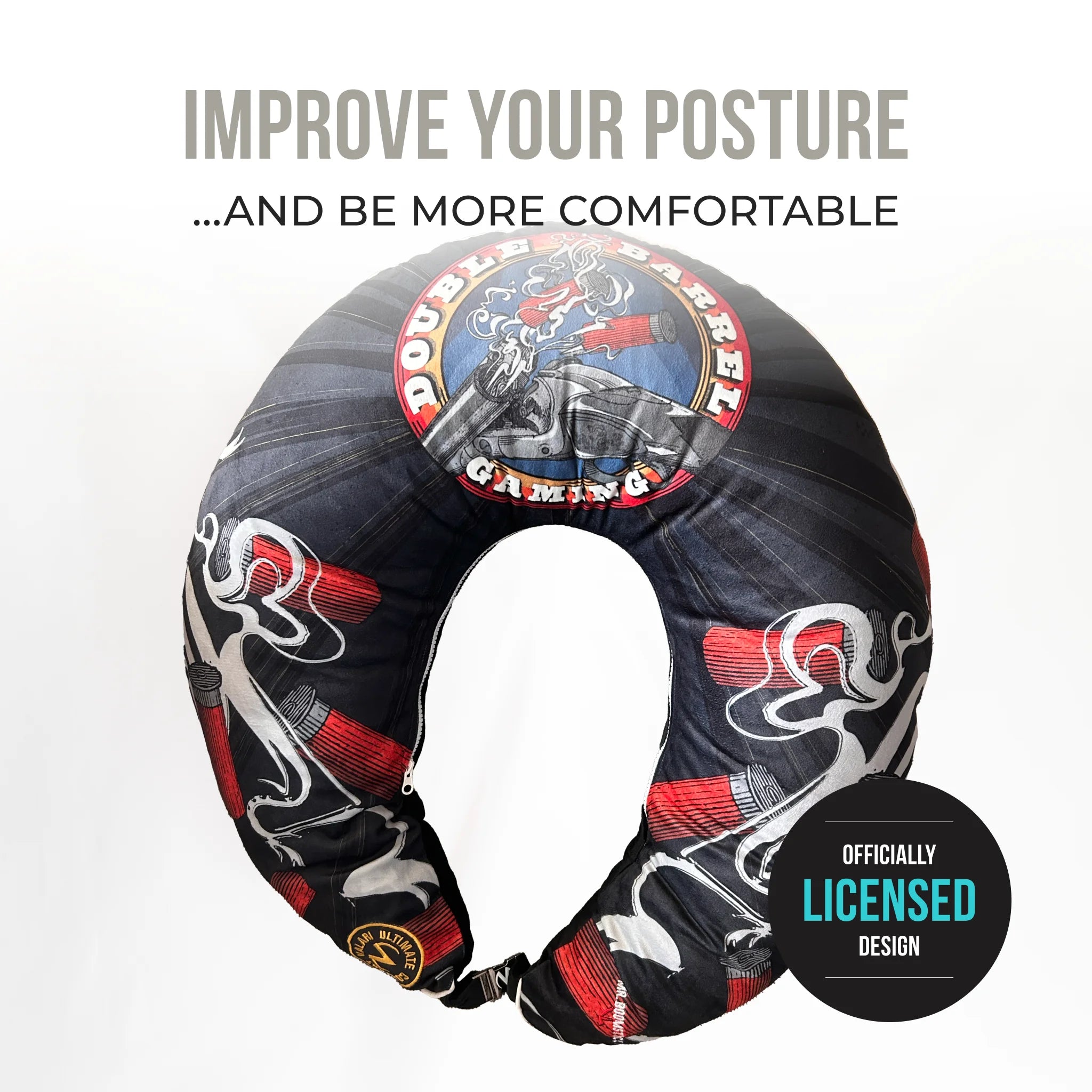 Lock and load your comfort. Built with Mr. BoomstickXL, this officially licensed Valari delivers ergonomic support for long sessions—relieving neck, arm, and shoulder strain. Premium vegan velvet, two-tone design, piped edges, and a washable cover. Game loud. Game long.